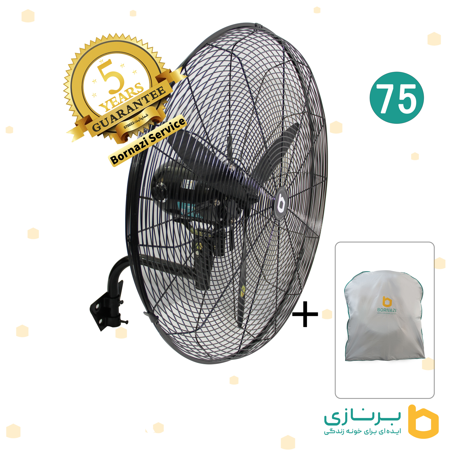 پنکه صنعتی برنازی سایز 75 دیواری با کاور مخصوص . BORNAZI